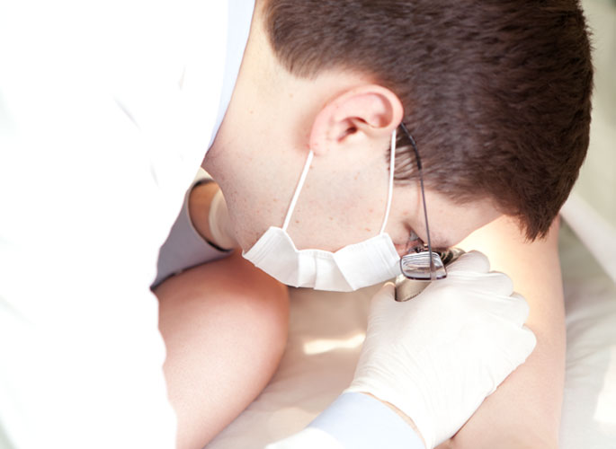 - изучение кожных покровов с помощью лупы;