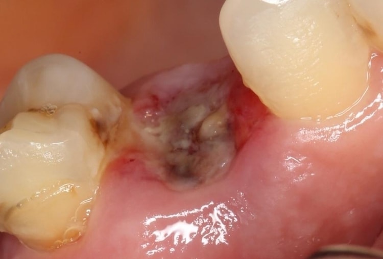 При прогрессировании патологического процесса в короткое время (буквально за несколько дней) может развиться ограниченный остеомиелит, сопровождающийся гнойным расплавлением костных структур лунки.