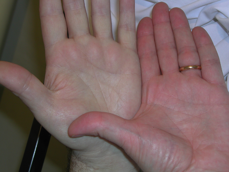 - при осмотре – кожные покровы и видимые слизистые оболочки бледные. На более поздних этапах заболевания визуально отмечаются ослабление пациента, его вялость и адинамия;