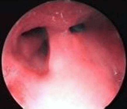 Клиническое подозрение на атрезию хоан может быть подтверждено при обследовании новорожденного с помощью гибкого назального эндоскопа при соответствующей подготовке, такой как устранение заложенности носа и отсасывание слизи, что позволяет напрямую визуализировать возможную обструкцию носового хода.