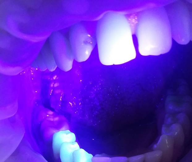 Эффективным методом распознавания начального кариеса является витальное окрашивание зубов, а также стоматоскопия с направлением на проблемные зубы пучка ультрафиолетового света.