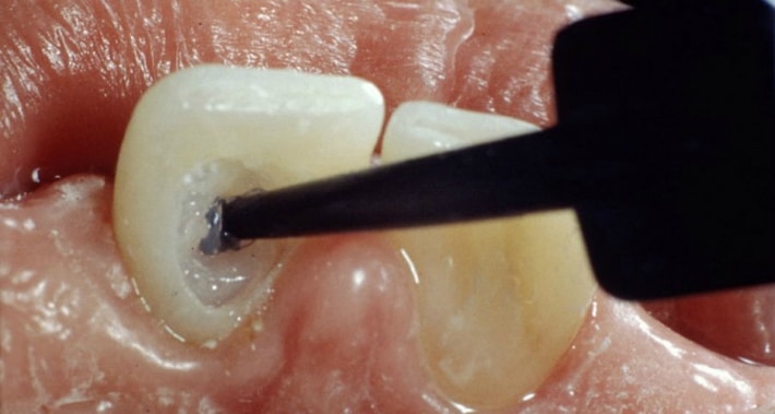 Для обеспечения максимально возможного контакта гелей с внутренней поверхностью зуба обязательно механически удаляются все остатки ранее поставленных пломб, а сам активный комплекс вносится посредством особого шприца-аппликатора.