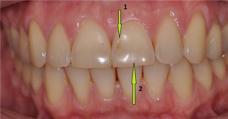 Эрозия чаще поражает зубы фронтальной группы (резцы, клыки, реже – премоляры). Основным клиническим признаком патологии являются дефекты или пятна, имеющие округлую, овальную или неправильную форму.