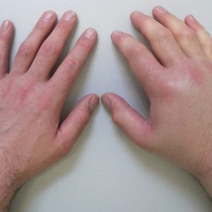 - при осмотре – зависит от вида и стадии заболевания, но главными признаками являются буквально «вздутие» кисти, потеря ее контуров, при прорыве гноя видно отверстие свищевого хода. Очень часто пациент заходит в кабинет врача, поддерживая пораженную кисть здоровой рукой – буквально неся ее;
