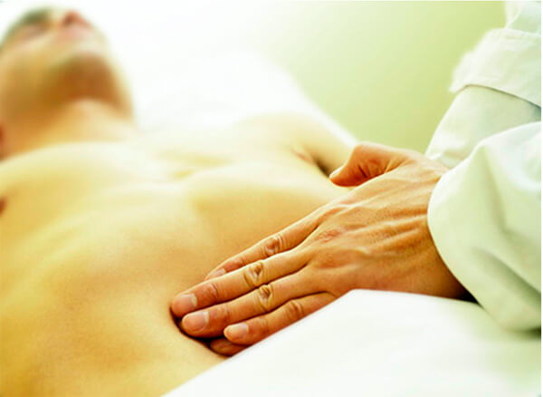 - при пальпации больной жалуется на умеренную болезненность в правой подвздошной области. На пике диспептических явлений (в частности, частого поноса) определяется урчание при прощупывании живота в той же области;