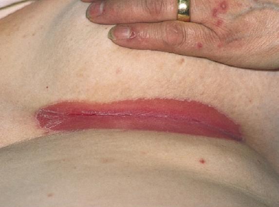 Из-за зуда больной расчесывает зону поражения – эрозии долго не заживают, при этом они покрываются корочками, которые являют собой высохшие выделения на эрозивной поверхности.