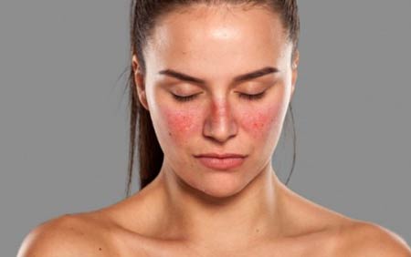- системная красная волчанка – диффузное (распространенное) заболевание соединительной ткани и сосудов микроциркуляторного русла, которое проявляется характерным рисунком в виде бабочки на коже лица;