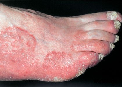 Такие патологические процессы способствуют тому, что присоединяется инфекция. В основном она грибковая – и это еще одна из особенностей интертригинозного псориаза в сравнении с другими разновидностями псориатического поражения. Наступает новый «цикл» клинических проявлений: