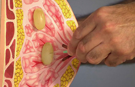 - биопсия – забор участков тканей молочных желез, которые отправляют на исследование под микроскопом.