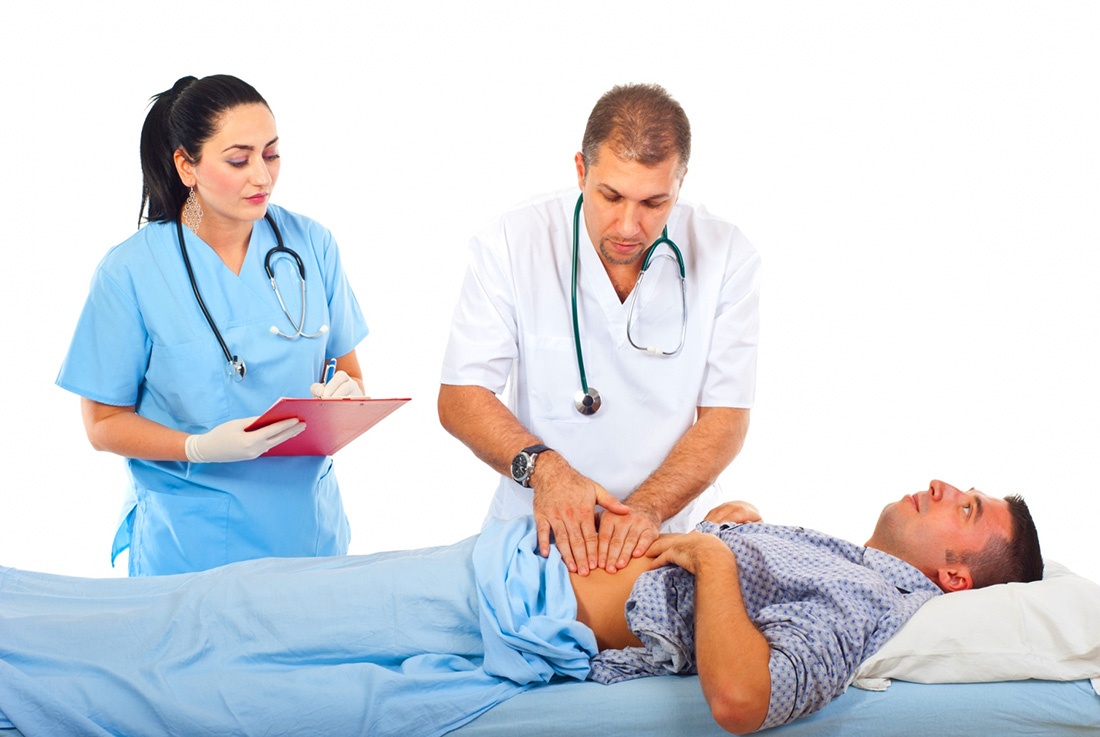 - при пальпации (прощупывании живота) определяется болезненность в основном в областях, пограничных с околопупочной зоной;