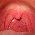 - фарингоскопия – во время нее проводят осмотр ротоглотки с помощью шпателя и рефлектора. Выявляют увеличение пораженных миндалин, их отечность, смещение к срединной линии ротовой полости, иногда – невыраженный налет, который легко снимается. Помимо изменений со стороны миндалин, отмечаются отклонение и набухание небного язычка, утолщение передней дужки, нередко ее выпирание, покраснение и отечность тканей зева;