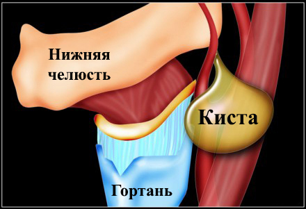 В случае образования кисты у корня языка ее можно удалить и через разрез на коже, и при операционном доступе через рот.