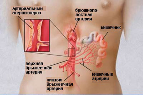 Попав с током крови в брыжеечный сосуд, тромб или эмбол перекрывают его просвет.