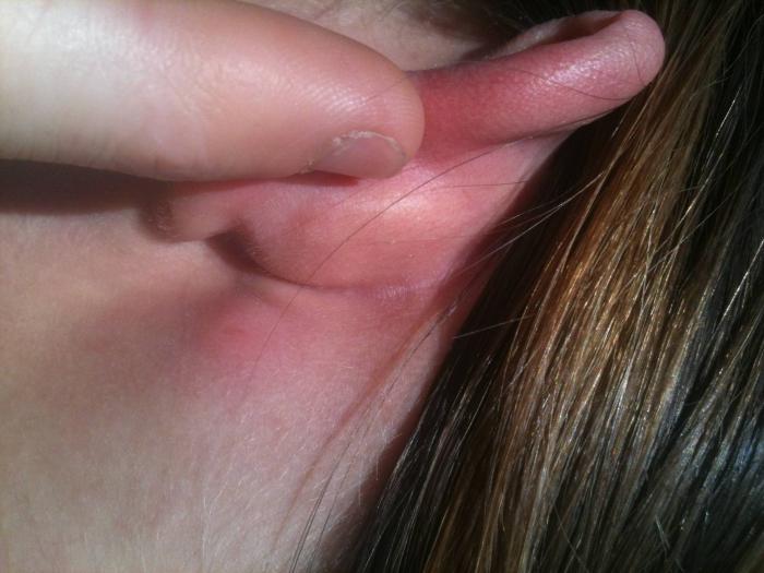 - первичный перихондрит – воспалительное поражение перихондрия ушной раковины. При нем поражение более обширное, чем при воспаленной гематоме, флюктуация отсутствует, в анамнезе нередко выявляется наружный отит (воспаление наружного уха);