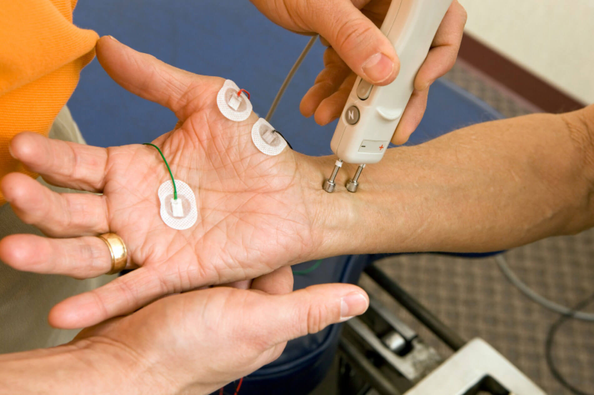 - электронейрография – измерение скорости прохождения нервного сигнала по двигательным и чувствительным волокнам периферических нервов. Определяется на участке от места выхода нервных корешков из головного и спинного мозга до нервных веток в мышцах и связках. Также помогает оценить нарушения иннервации (нервного обеспечения) при повреждениях грудного отдела позвоночника;