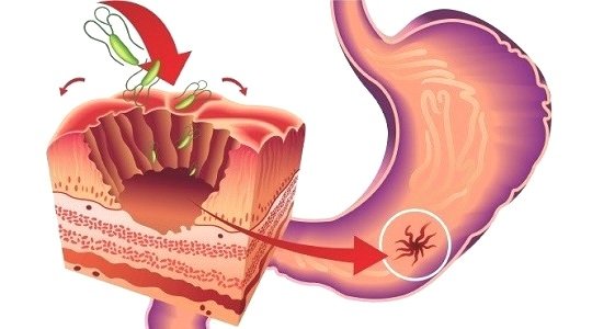 - инфекционный агент – в частности, наличие в полости желудка хеликобактера пилори. Следует помнить, что этот возбудитель обнаружен в 95% пациентов с пептическими язвами, а вот острые язвы в максимальном большинстве случаев с ним не связаны никак.