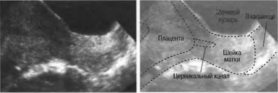 Когда при исследовании, исходя из данных УЗ-сканирования определено предлежание (причем, оно полное), категорически запрещено применять влагалищные исследования, чтобы не провоцировать кровотечений. Когда имеется лишь частичное предлежание, критериями его становится длина промежутка от края плаценты до отверстия, составляющего внутренний зев. Если это 50 мм либо меньший размер, это низко расположенная плацента. Когда же в зоне внутреннего зева обнаруживается плацентарная ткань – это предлежание. С срока второго и затем третьего триместров гестации, до периода 28-ой недели, о положении плаценты судят по измерению промежутка от внутренних краев маточного зева до плацентарной ткани, сравнивают этот размер с диаметром головки ребенка.