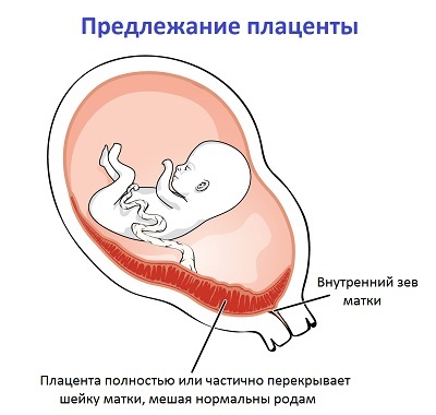 На фоне имеющегося предлежания беременность нередко еще и осложняется другими патологиями. К ним относится угроза прерывания, что обуславливается теми же факторами, что и само предлежание. Нередко на фоне предлежания, особенно если оно полное, формируются преждевременные роды, с рождением ребенка разной степени недоношенности.