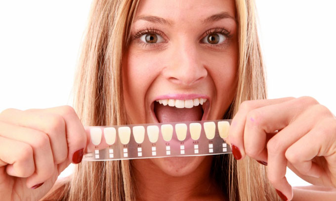 - Вначале стоматолог устанавливает «природный» цвет эмали согласно шкале VITA, и обсуждает с пациентом, какого оттенка хотелось бы достичь в результате процедур.