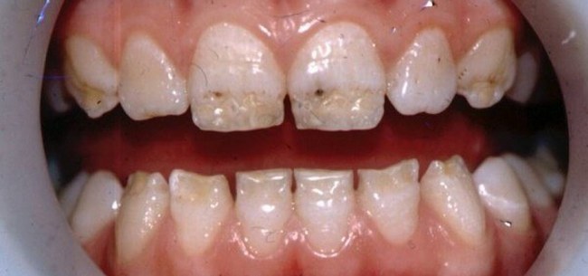 Если будущей мать в период беременности или ребенку до 12 лет проводилась антибиотикотерапия с применением антибактериальных препаратов тетрациклинового ряда, зубы могут приобрести серый, темно-желтый или коричневый цвет.