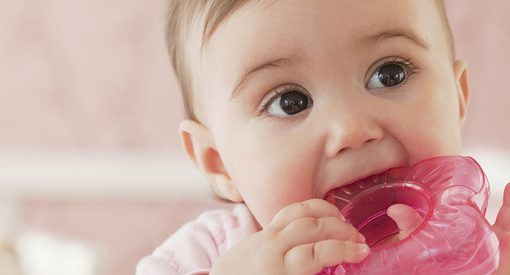 - Применение специальных детских прорезывателей, которые на рынке представлены в огромном ассортименте: соски-прорезыватели, обычные погремушки на прорезиненной основе, охлаждающие прорезыватели. Последние отлично обезболивают за счет охлажденной жидкости, размещенной внутри. Перед применением подобный прорезыватель нужно поместить в холодильник на 15 минут. Стоит отметить, что есть универсальные прорезыватели, подходящие для любых зубов, а также узкосегментированные, среди которых можно найти «помощника» именно для клыков. Выбирая подходящий вариант, следует помнить о главном критерии – безопасности. Поэтому лучше покупать прорезыватели от проверенных брендовых производителей (Nuby, Tommee Tippee, RaZ baby, Canpol, Nuk), поскольку это хоть некая, но все же гарантия качества.