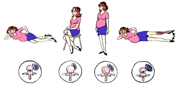 В итоге на вену давит около 6-7 кг веса, в силу чего ее стенки сминаются, делая просвет более узким. Учитывая, что ток крови по венам осуществляется против силы земного притяжения, за счет присасывающего действия сердца и сокращения элементов вокруг сосудов, становится понятно, что в таких условиях крови течь гораздо сложнее. Добавим сюда и тот факт, что беременная матка поднимается своим дном вверх, изменяя анатомию диафрагмы и легких, что также затрудняет приток крови к предсердию.