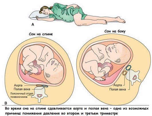 Ощущается это состояние как нарастающее головокружение с ощущением нехватки воздуха, потемнением в глазах и предобморочным состоянием. Если длительно находиться в таком положении, это грозит серьезными осложнениями для самой женщины и плода.