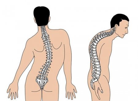 - при осмотре – на начальных стадиях болезни без особенностей, при прогрессировании и критических последствиях – деформация позвоночника различной степени выраженности;