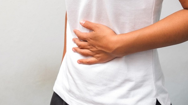 - в случае поражения поясничного отдела – характерной является скованность походки, а также усиление поясничного лордоза (физиологического выгибания в направлении сзади наперед) и выпячивание живота.