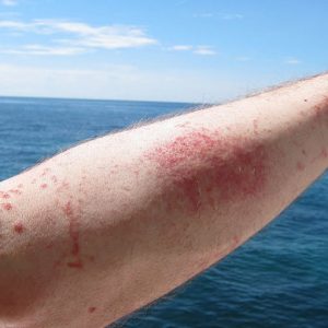 Важно не трогать место ожога незащищенными руками, чтобы дополнительно не получать еще и ожоги в области кистей, а также промывать место ожога пресной водой, которая приводит к разрушению части эпителиальных клеток, что приведет к усилению боли. Морская же вода из-за соли в ней не дает сильно разрушаться клеткам, обезвоживая их и уменьшая ощущение боли. Исключением в отношении воды и промывания будет только попадание яда медузы в область глаз.