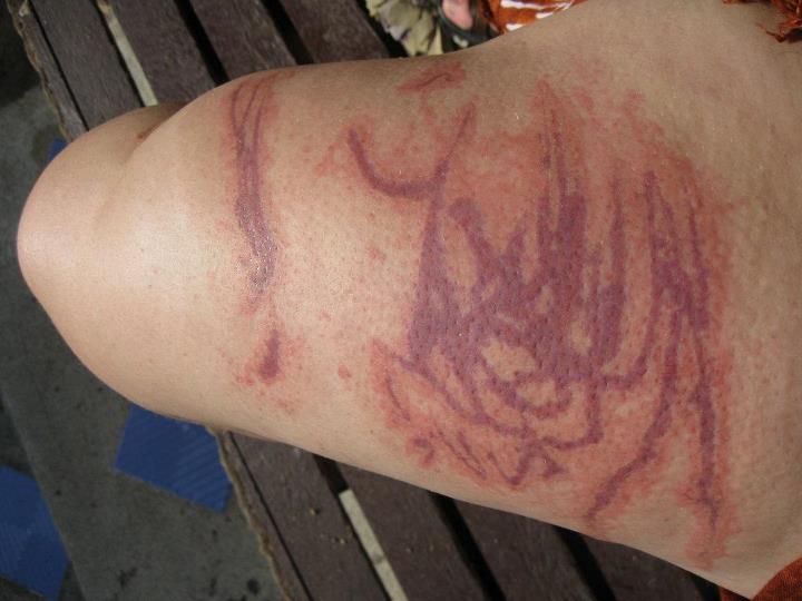 - Если на коже остались части щупалец, их нужно правильно удалить с пораженной кожи. Это делают полотенцем, пилкой для ногтей, краем пластиковой карточки или тыльной стороной ножа, аккуратно приподнимая и удаляя слизистые остатки щупалец беспозвоночного.