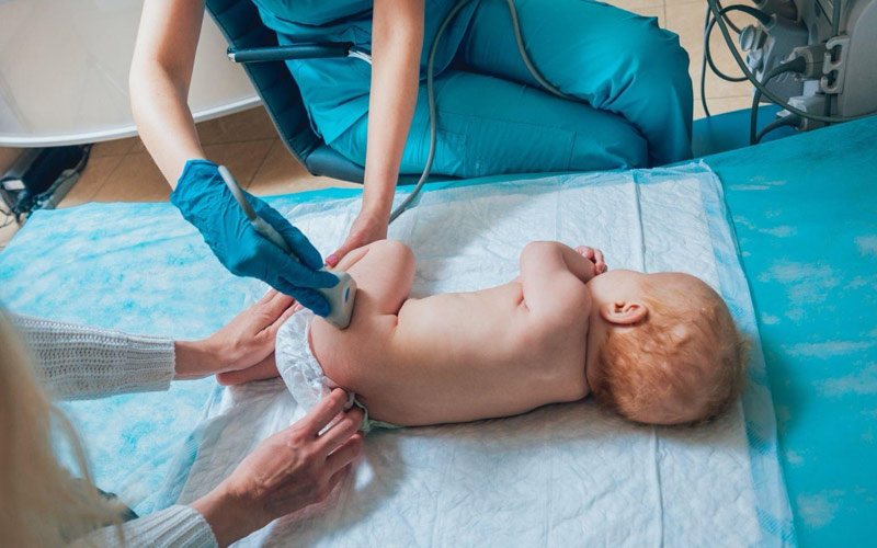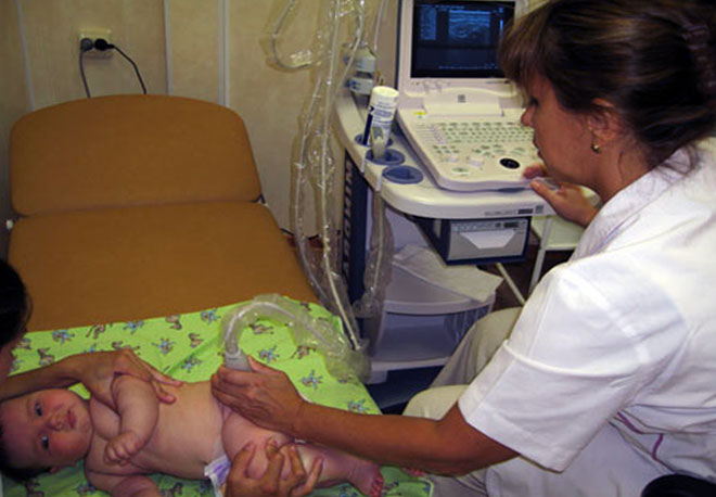 Предварительную диагностику проводит на осмотре в возрасте одного месяца педиатр, а затем – врач-ортопед в ходе плановых обследований. Подтвердить или опровергнуть диагноз могут уже по данным УЗИ-сканирования, после комплексного осмотра обоих тазобедренных суставов.