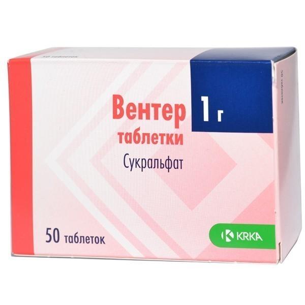Препарат Вентер производится в виде таблеток для приема внутрь; каждая из них содержит по 0,5 или 1 г активного вещества – сукральфата и вспомогательные ингредиенты.